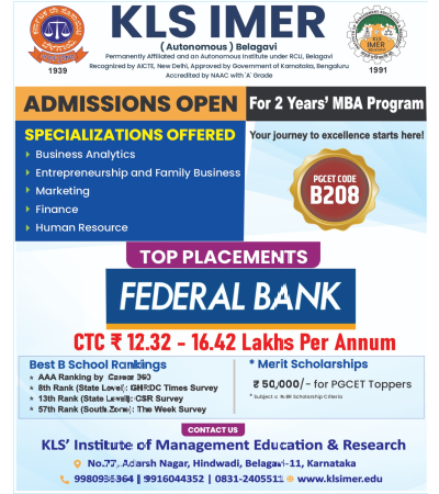 Karnatak Law Society's Institute of Management Education and Research (KLS IMER) – A Leading Management Institute in Karnataka