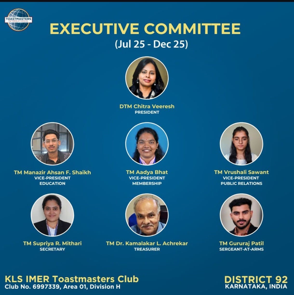 Executive Committee (Jul–Dec 2025) of KLS IMER Toastmasters Club